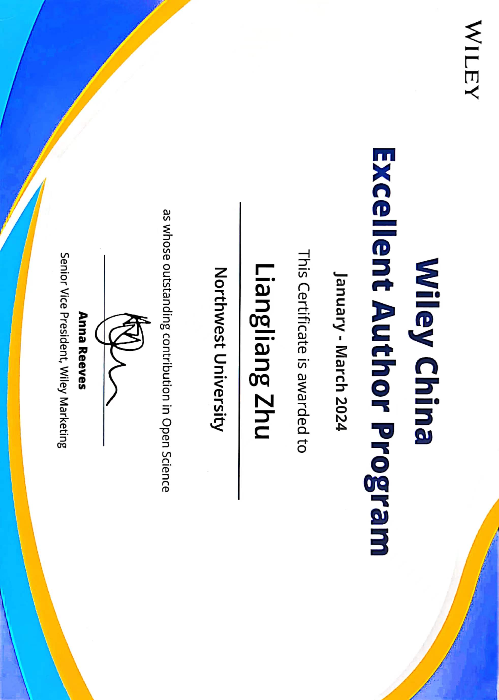 Wiley China-Excellent Author Program