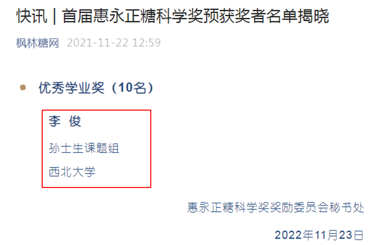Note:首届惠永正糖科学奖获奖者名单:https://mp.weixin.qq.com/s/UJ2wQ6bfBUqM1N2W3mRkcQ