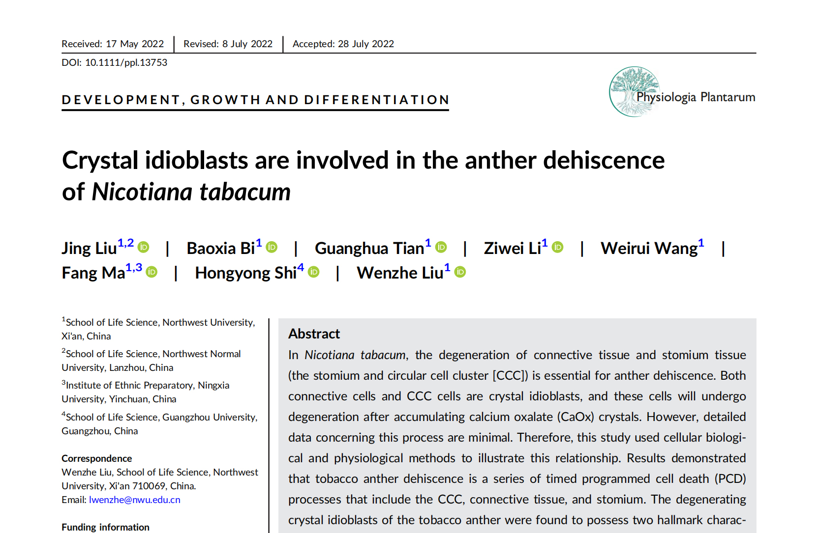 Journal:Physiologia Plantarum