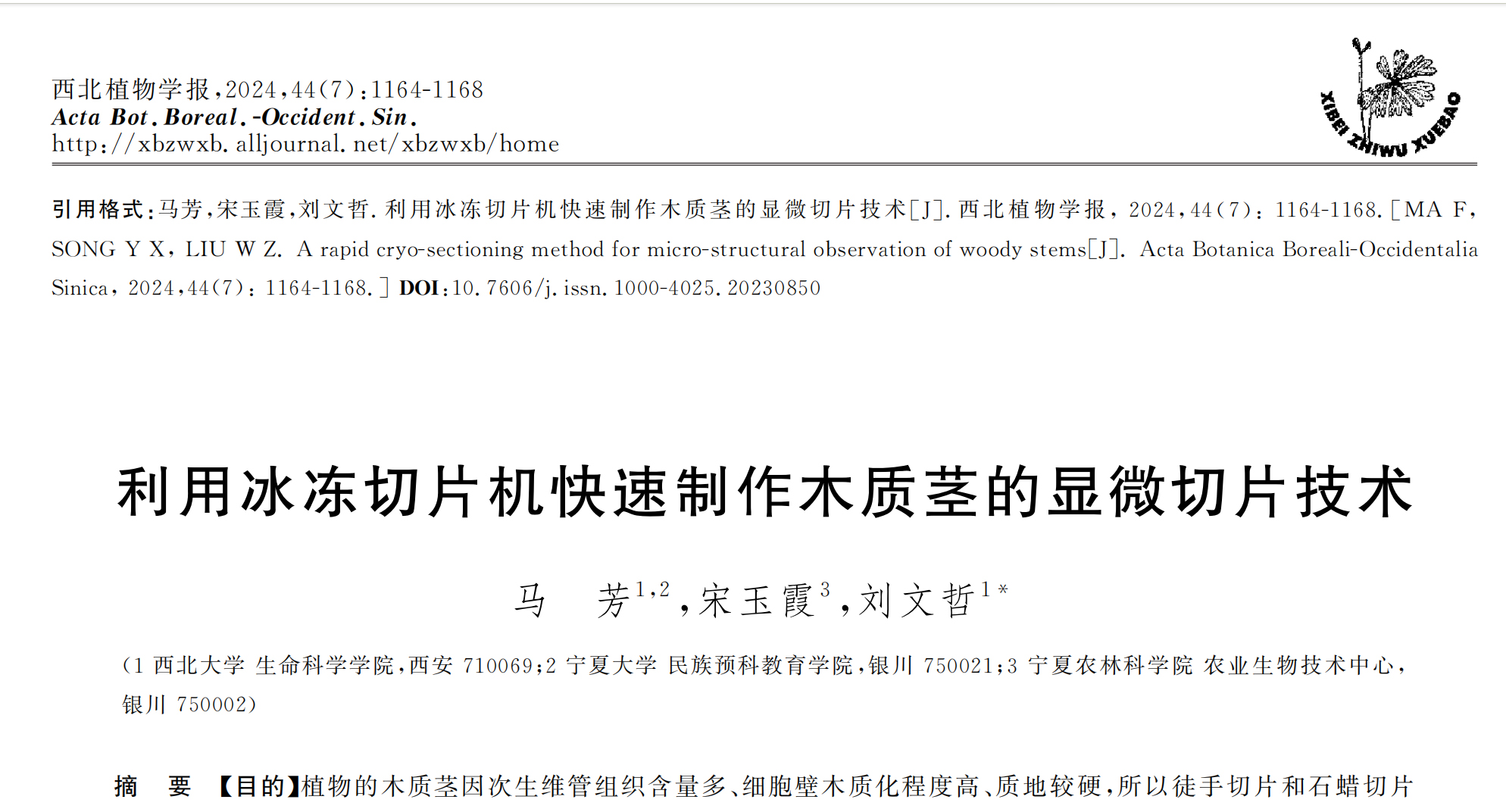 Journal:西北植物学报