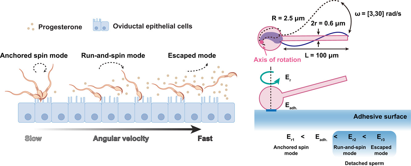 Abstract:Before fertilization, sperms adhere to oviductal epithelium cells, and only a restrictive number of winner sperms can escape to reach the egg. To study the sperm escape behavior from the oviductal surface, we developed a microfluidic chip to fabricate an adhesive surface and to create a gradient of progesterone (P4) for mimicking the oviduct microenvironment in vivo. We identified three sperm motion patterns in such a microenvironment─anchored spin, run-and-spin, and escaped mode. By using kinetic analysis, we verified the hypothesis that the responsive rotation energy anchored with the adhered sperm head determines whether the sperm is trapped or detaching, which is defined as the hammer flying strategy of successful escape after accumulating energy in the process of rotating. Intriguingly, this hammer-throw escaping is able to be triggered by the P4 biochemical stimulation. Our results revealed the tangled process of sperm escape before fertilization in the ingenious microfluidic system.